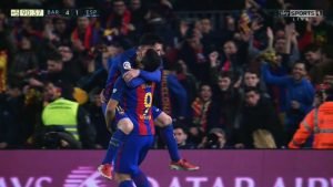 24 من كرة قوية صوبها وهو نصف نائم فاسكنها الزاوية قبل ان “يزرق” للحارس بعد 10 دقائق، الذي ذهل وهو يستقب كرة ثالثة منه د65 ، ورابعة راسية من بيكيه 86 الذي استمتع بمشاركة عثمان ديمبيلي الذي صنع بدوره الهدف الخامس للاورغواني سواريز من تمريرة ارضية رائعة..وعلى الطرف الاخر سقط الريال في حفرة التعادل.